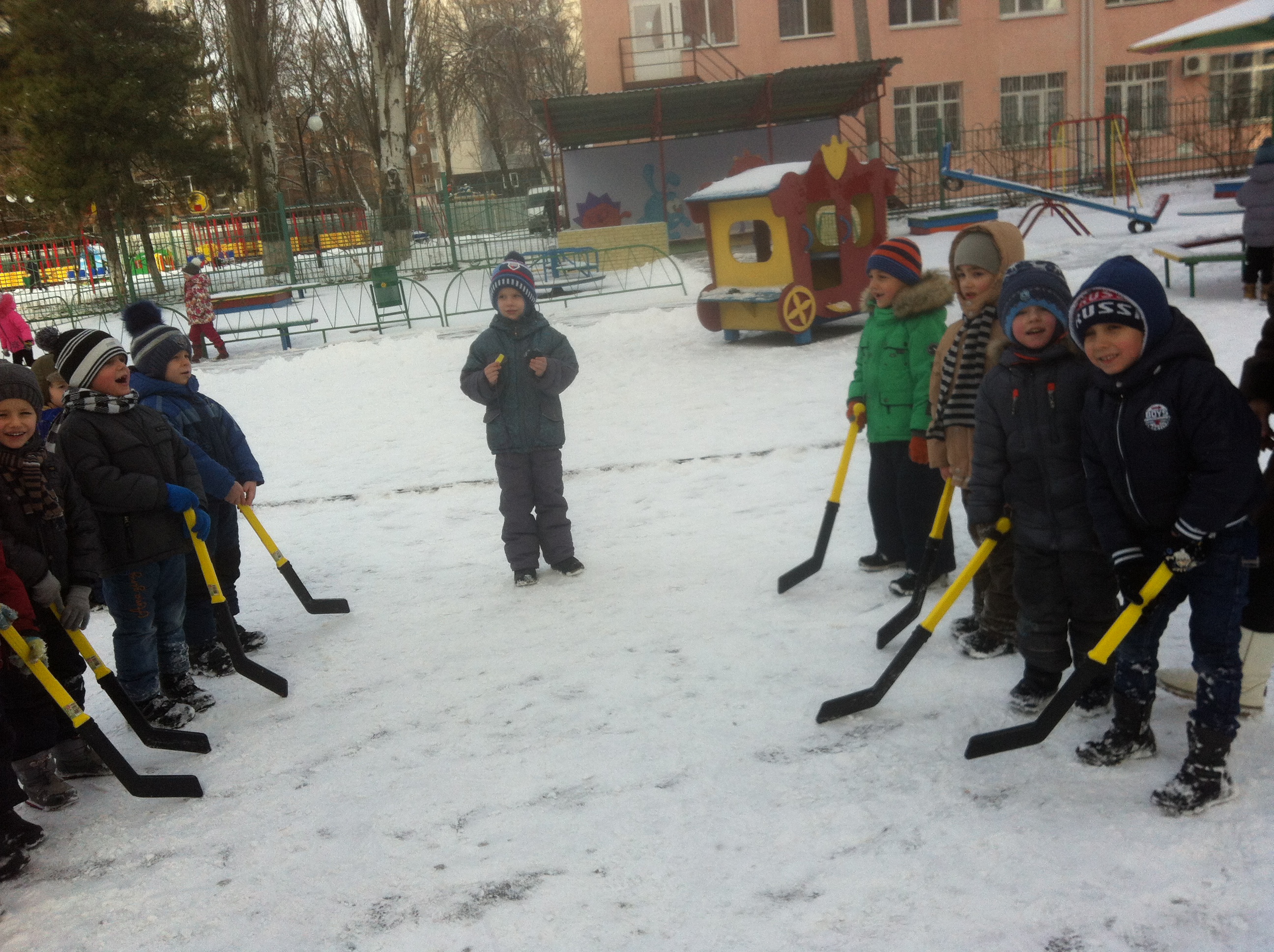 «В хоккей играют настоящие мужчины! Трус – не играет в хоккей!» - так поется в одной известной песне. А в нашем детском саду 22.01.2016 с зимними видами спорта познакомились и поучаствовали не только мальчики, но и девочки. Команды с удовольствием играли в хоккей, зрители активно «болели» за своих игроков. В результате матча победила – дружба.