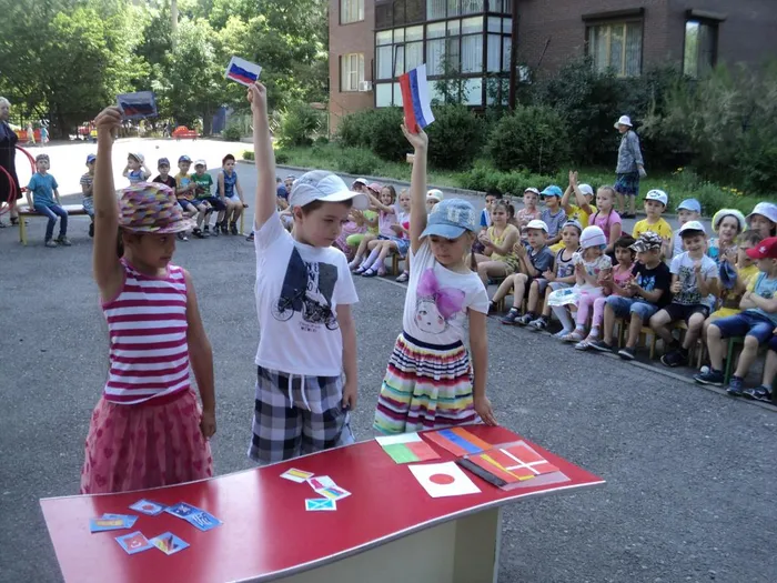 Сегодня в нашем дошкольном учреждении ребята и взрослые отмечали День России. Читали стихи, знакомились с государственными символами нашей страны: гербом, флагом, гимном. Состязались в ловкости, смелости, удали в спортивных конкурсах, воспевали красоту нашей необъятной родины. А завершился праздник танцем «Матушка-Россия» и зажигательными танцами детей.
