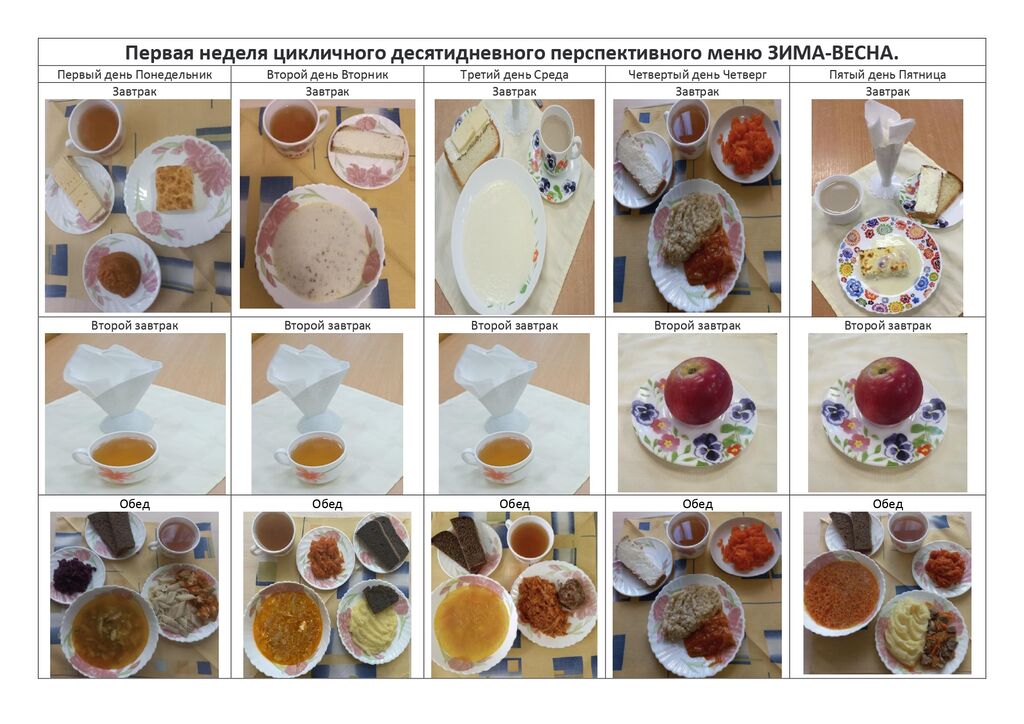 Фото готовых блюд цикличного десятидневного меню на зимне-весенний период
