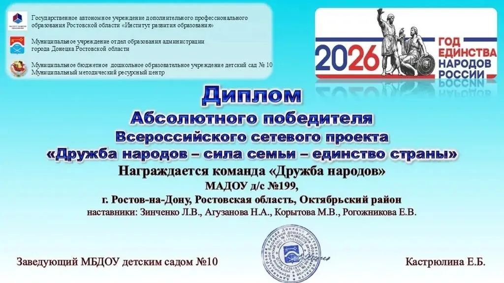 Абсолютные победители Всероссийского сетевого проекта "Дружба народов-сила семьи -единство страны"